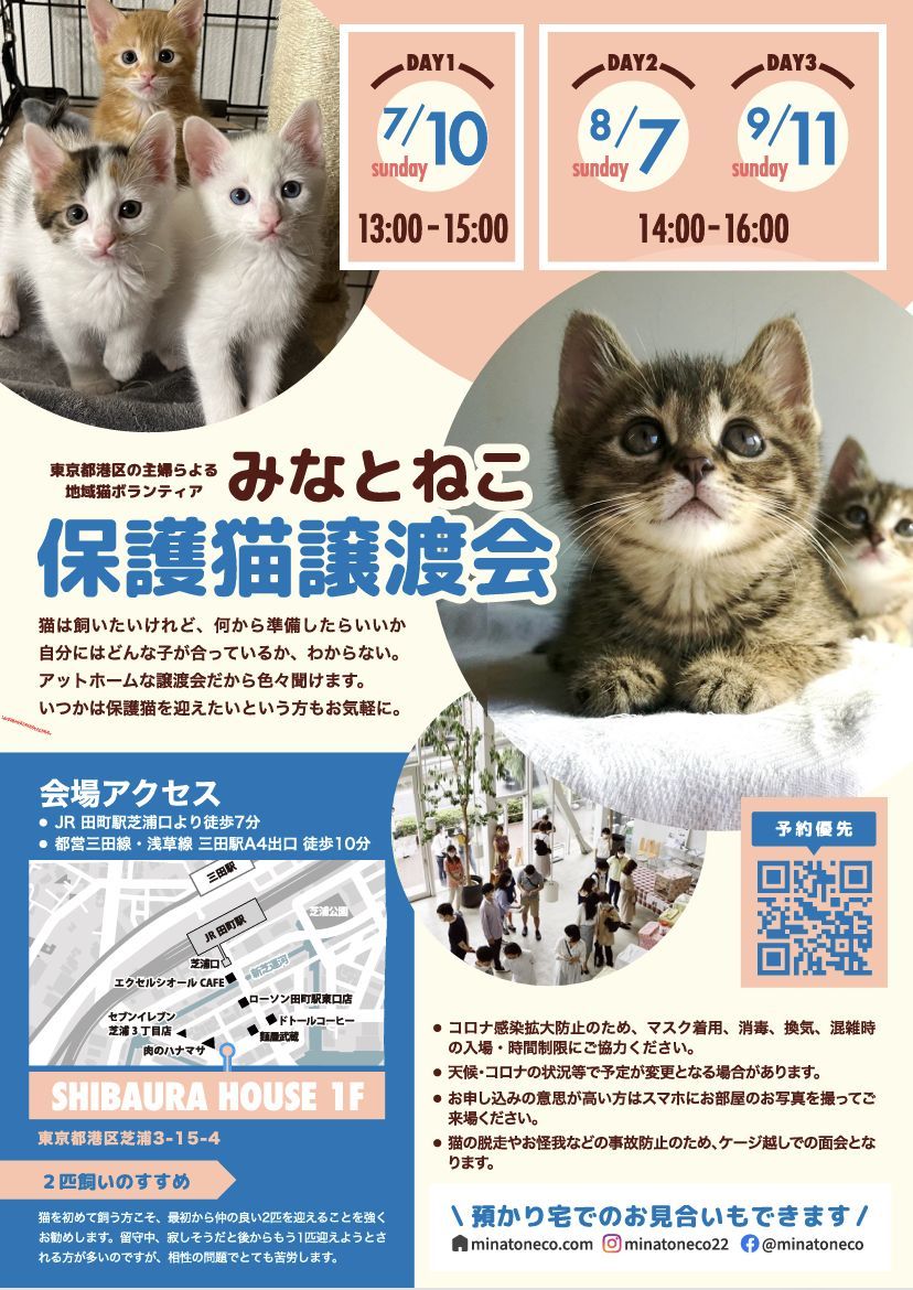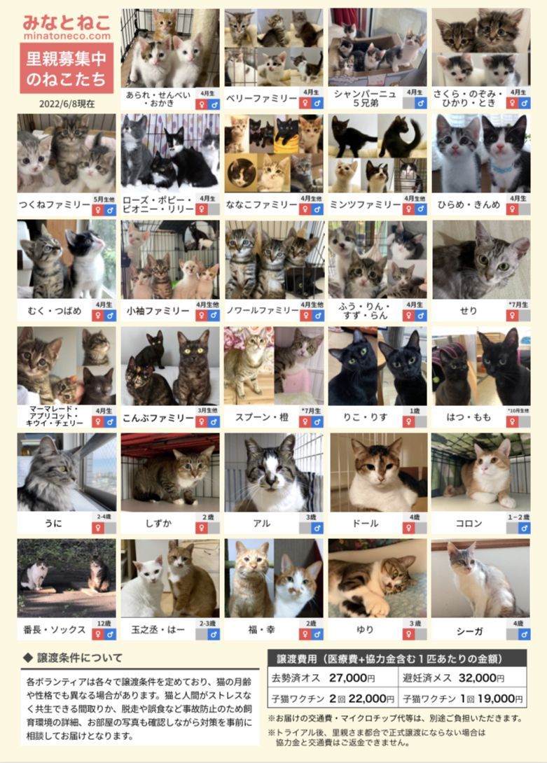 譲渡会のご予約は6/26(日)21:00よりみなとねこのHPよりお願いします
