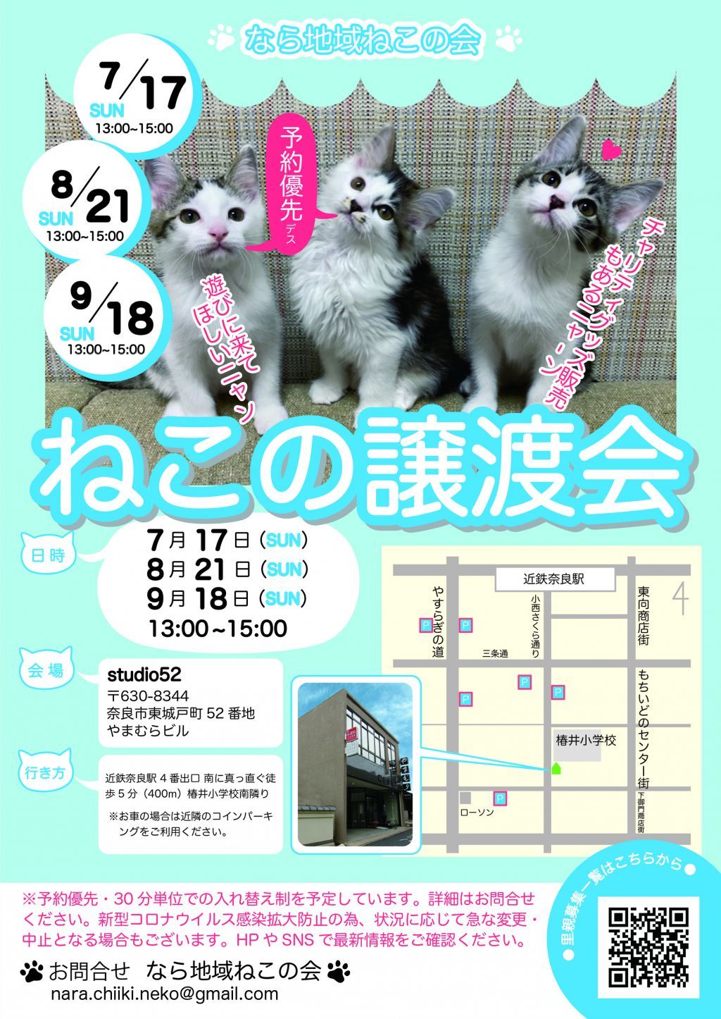 毎月奈良市ならまちにて猫の譲渡会を行っております。