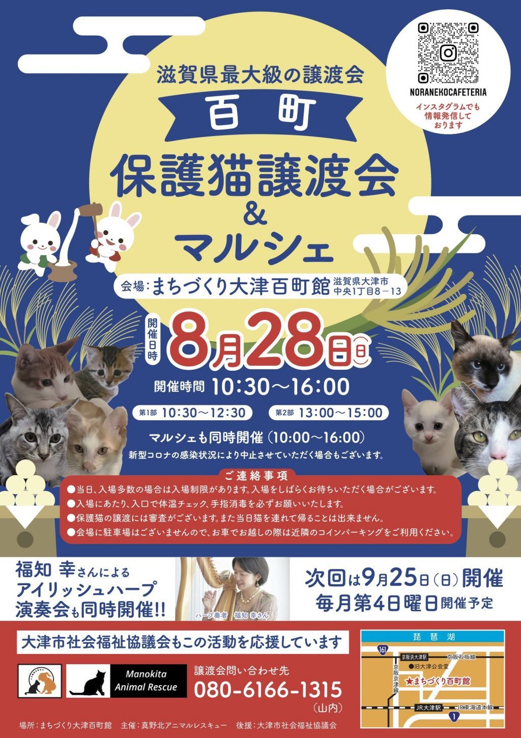 滋賀県最大級の保護猫譲渡会。マルシェも同時開催。毎月第4日曜日開催です。