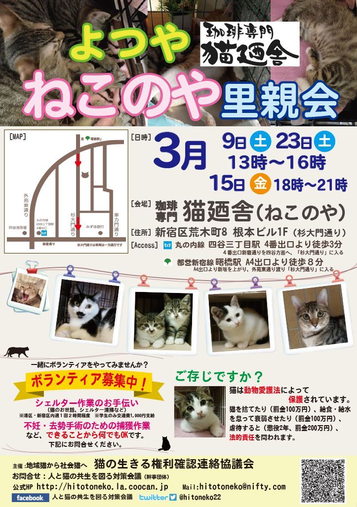 会場: 珈琲専門 猫廼舎 (ねこのや) (新宿区荒木町8, 根元ビル1階 (杉大門通り))