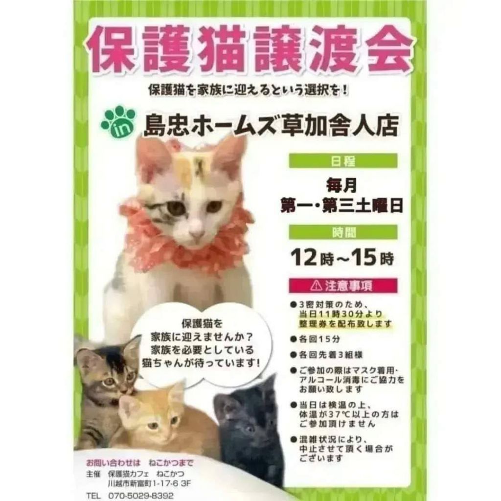 (譲渡会の主催はねこかつさんで、ねこエイドはご厚意で参加させていただきます)
