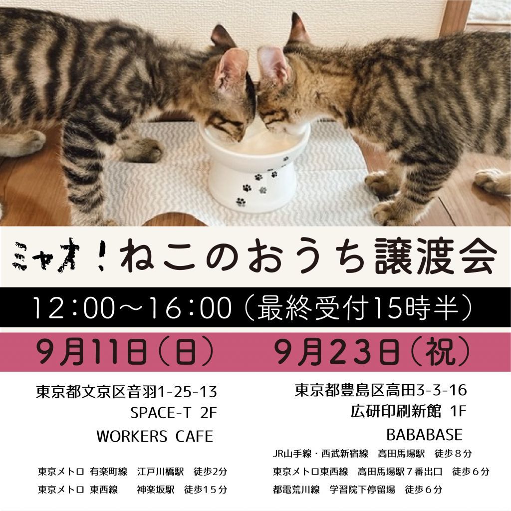 ※経済的に困難な世帯、必要な脱走対策を施していただけない方には原則的に譲渡はご遠慮頂いております。60才以上の方のみのご家庭や独身の方は、譲渡可能な猫が限られる場合があります。また、保護主により譲渡条件が異なる場合もございますので会場でご相談ください。
