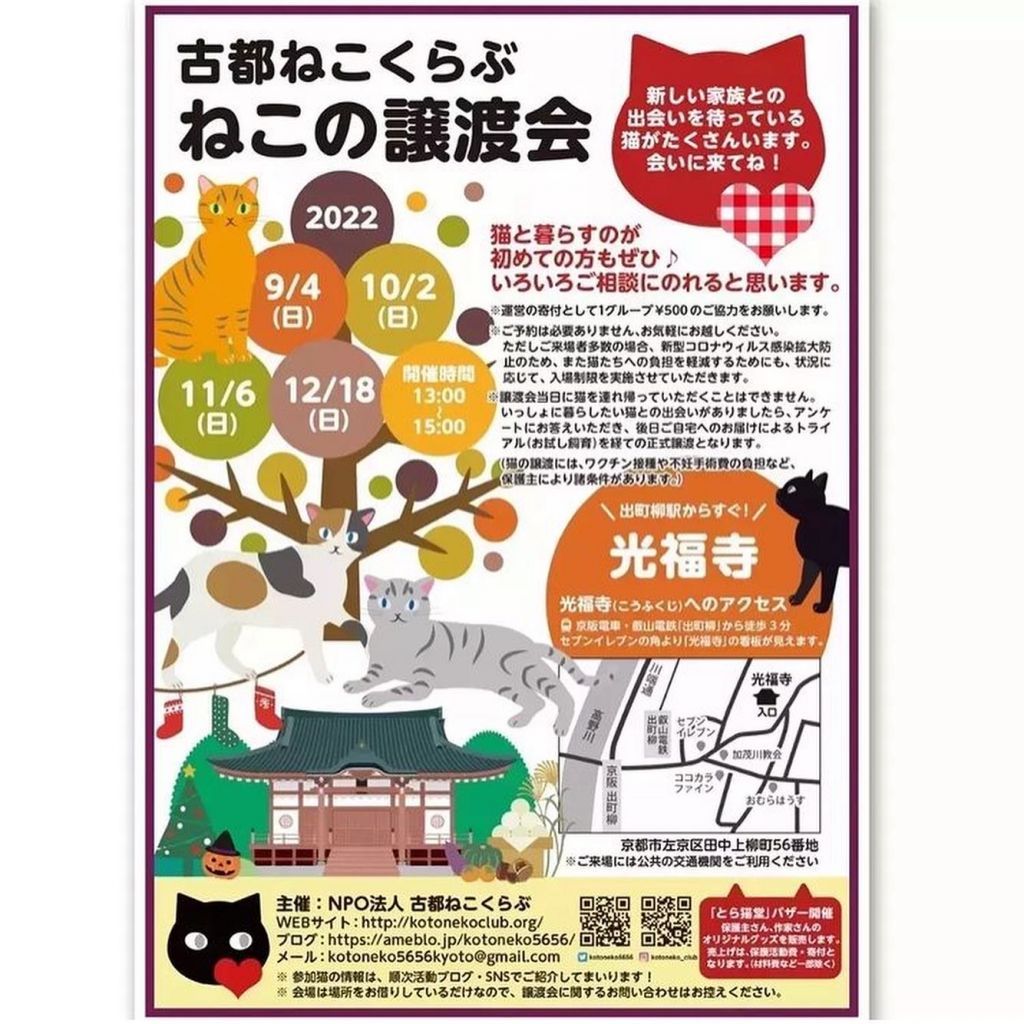 古都猫クラブさん主催の保護猫の譲渡会です。ねこサポ長岡京も定期的に参加させていただいております。