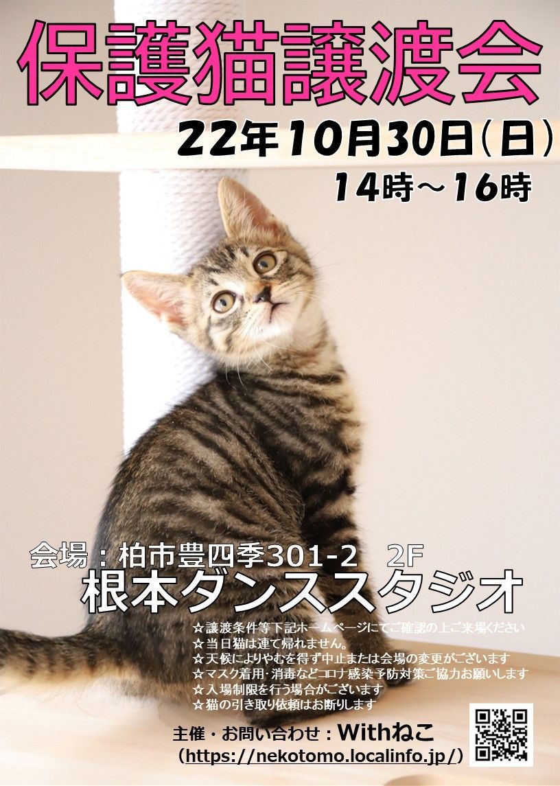 【柏市】10/30(日)根本ダンススタジオ保護猫譲渡会
