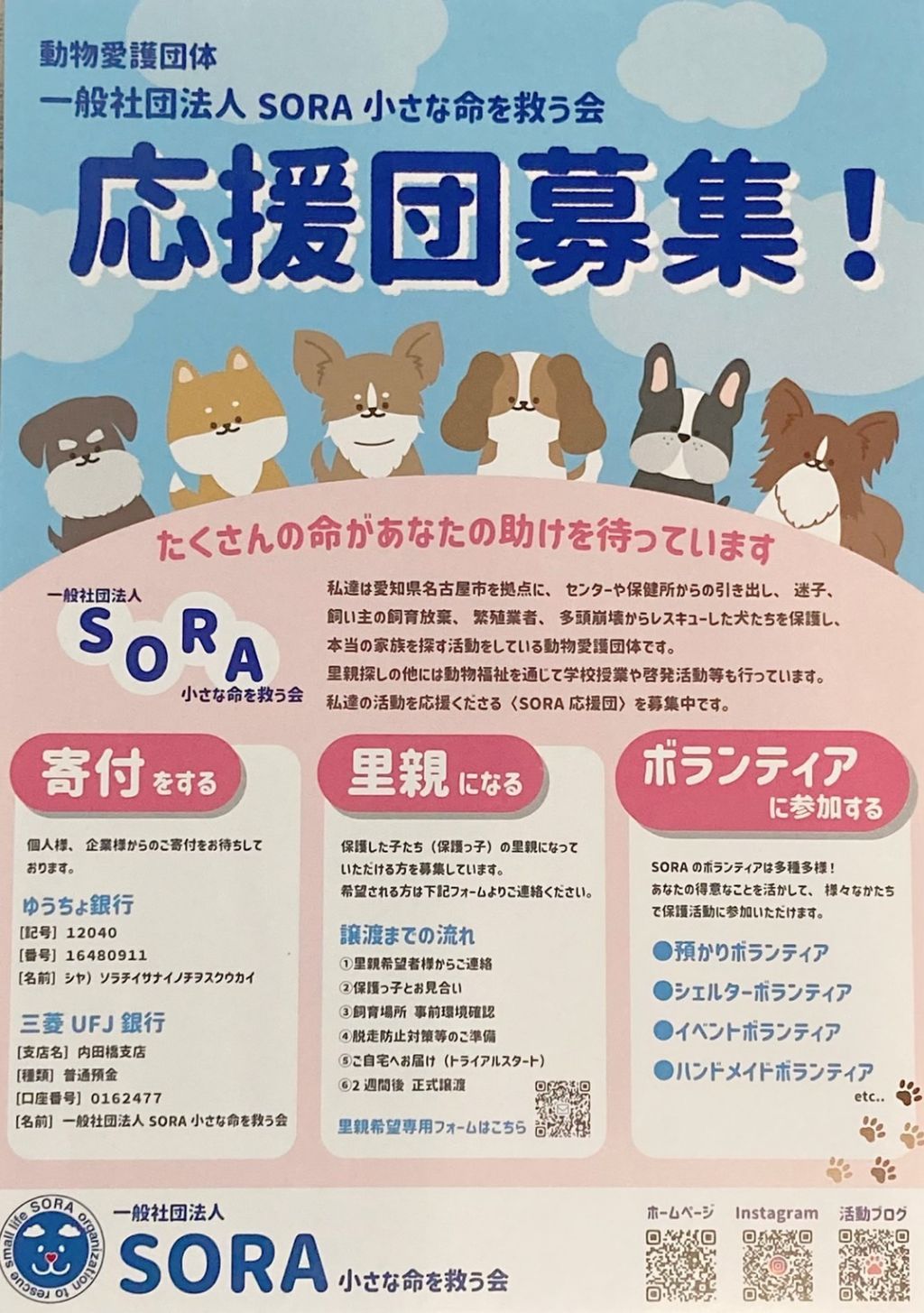 可愛いワンコの雑貨やお洋服、おやつなどが沢山買えるワンコのマルシェ『各務原わんマル』に一般社団法人SORA小さな命を救う会もチャリティーイベントで参加させていただきます。