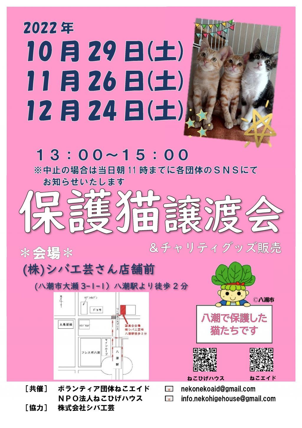 保護猫を迎えようと検討されている方はもちろん、NPO法人ねこひげハウスさんではチャリティグッズの販売もありますので、ぜひお立ち寄りください。