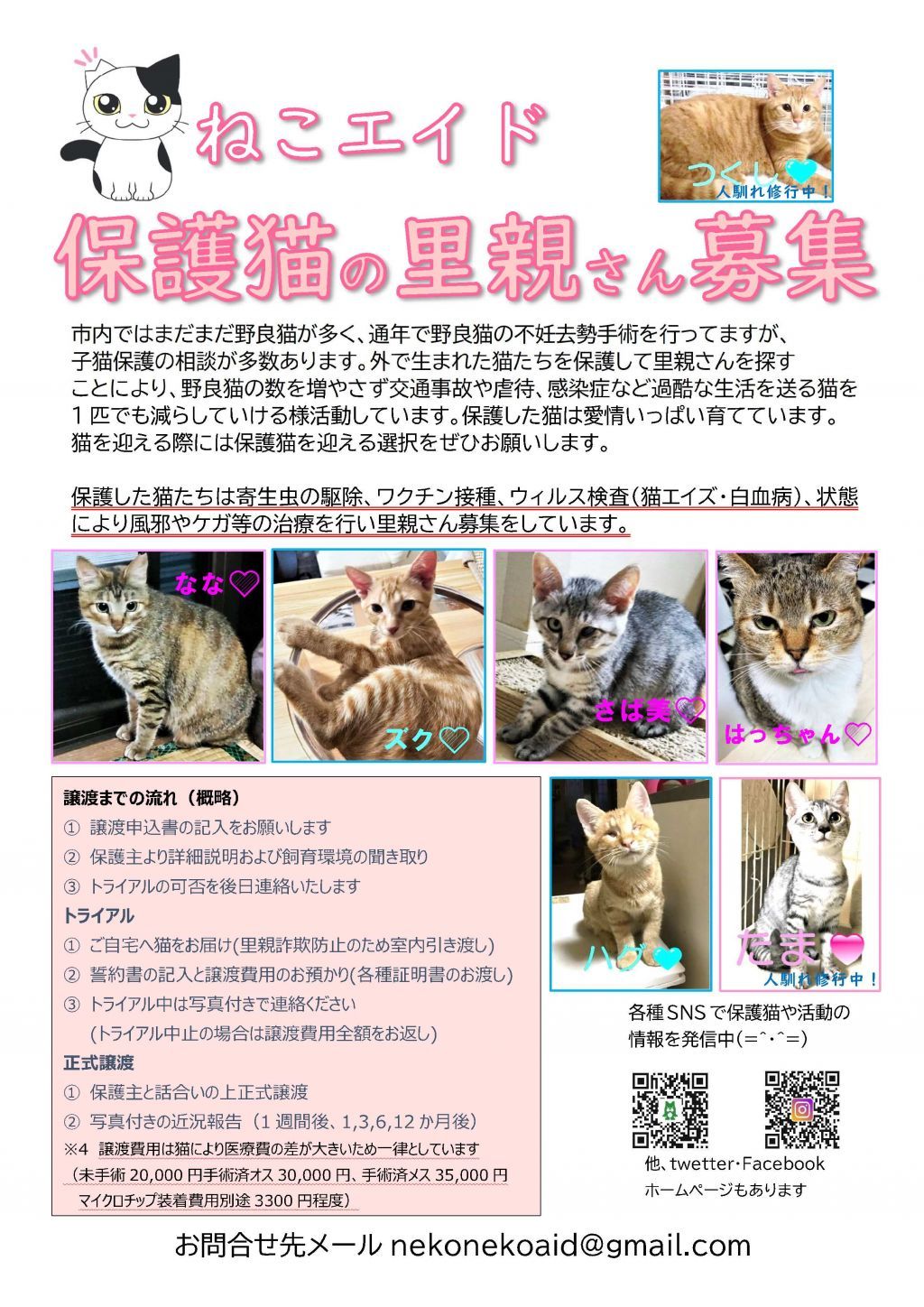 主に八潮市で保護された猫たちの里親になってくれる方を募集してます。