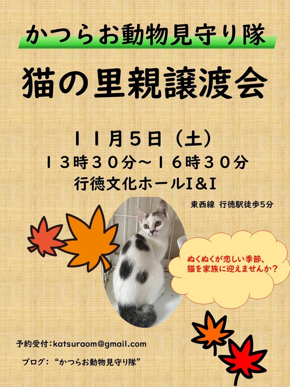 アットホームな譲渡会を目指しています。