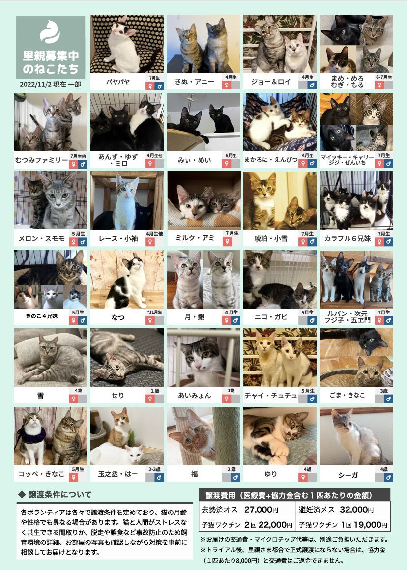 25ケージ 60匹ほどの参加となりますが、それ以外の預かり宅の猫もご紹介可能です。