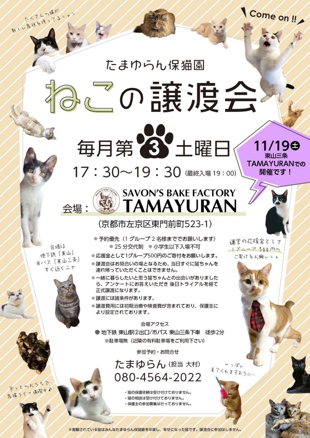ゆったりと保護主とお話できる素敵空間cafeでの譲渡会です。是非ご縁を探しに来てください♪