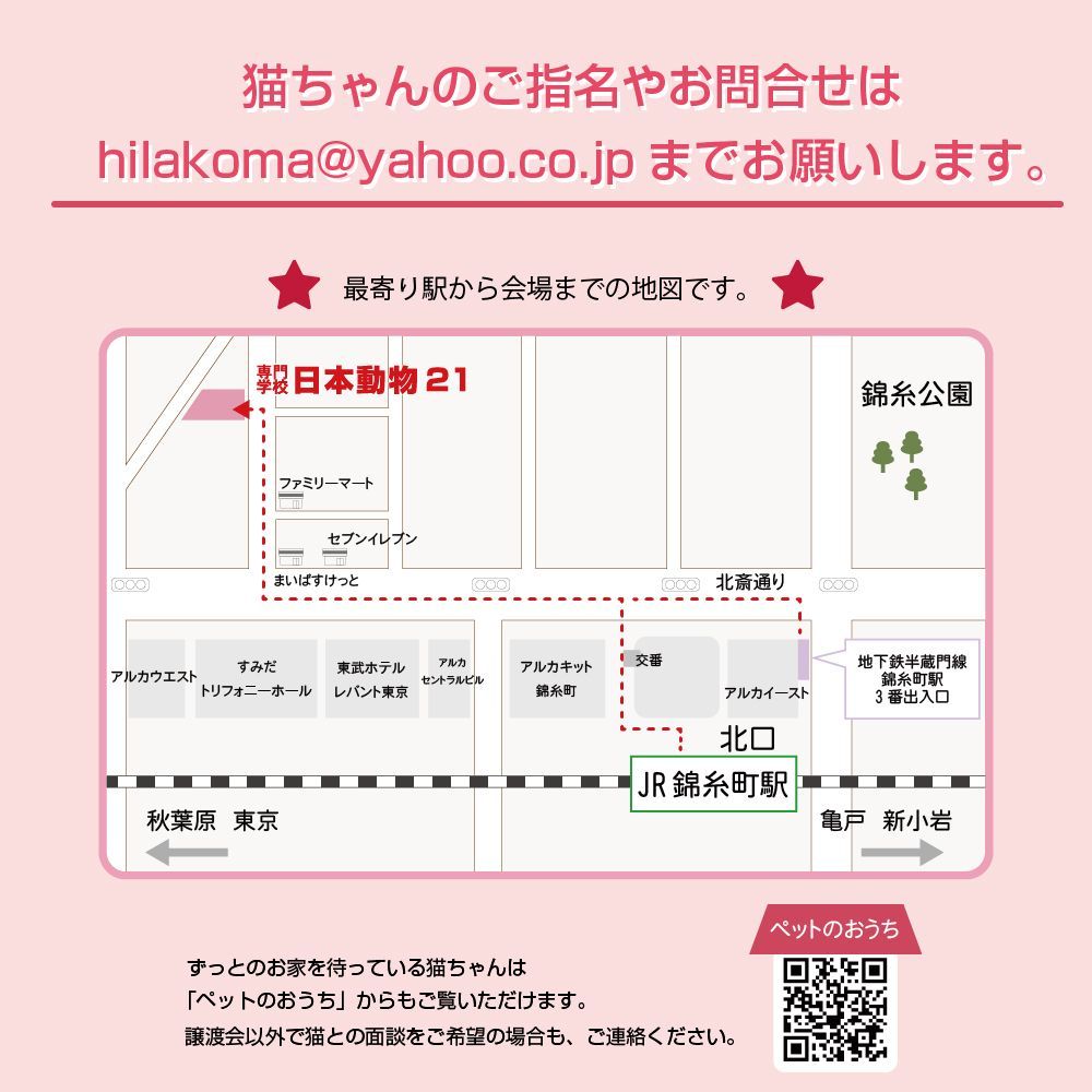 東京 錦糸町の専門学校日本動物21様のご協力により、同校舎にて猫の里親譲渡会を開催させていただきます。
