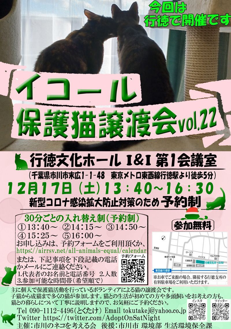 イコール保護猫譲渡会vol.22(市川市環境部生活環境保全課 後援)