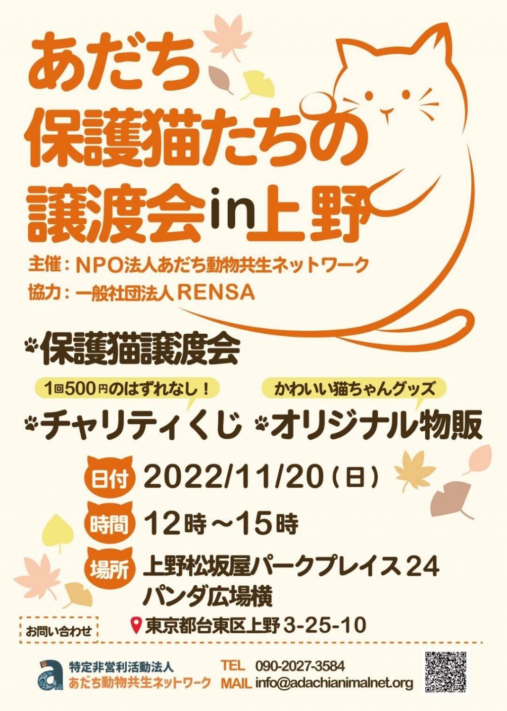 今回は、当法人の会員でもあり譲渡会を定期開催している、北千住里親会(北千住)・竹ノ塚里親の飼い(西新井)・猫の里親を探す会(亀有)の保護猫たちがやってきます。