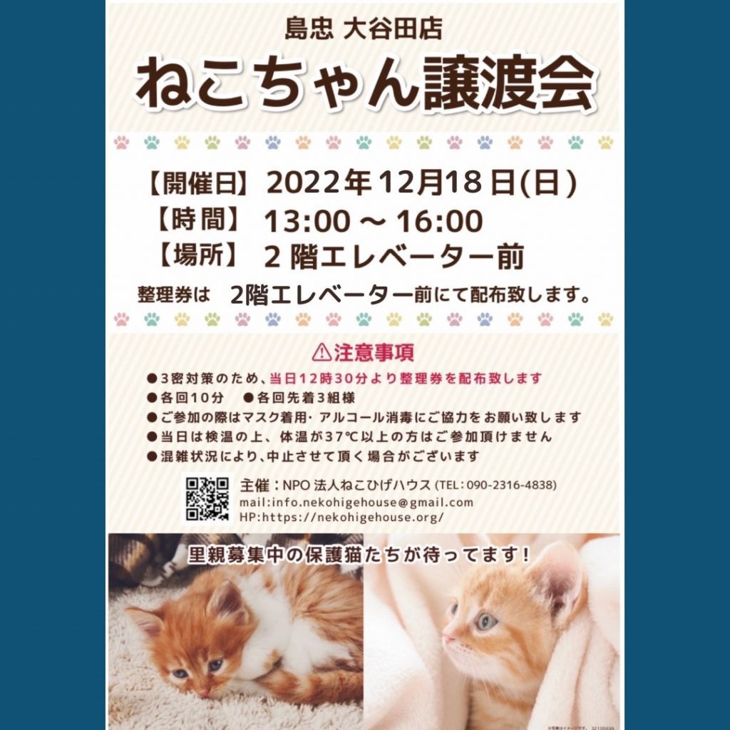 当日の猫の体調などにより参加猫のお休みや変更がある場合があります。