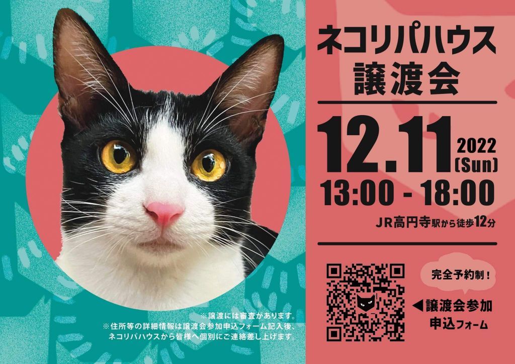 ネコリパブリックの東京シェルター、ネコリパハウス高円寺で今年最後の譲渡会を行います!