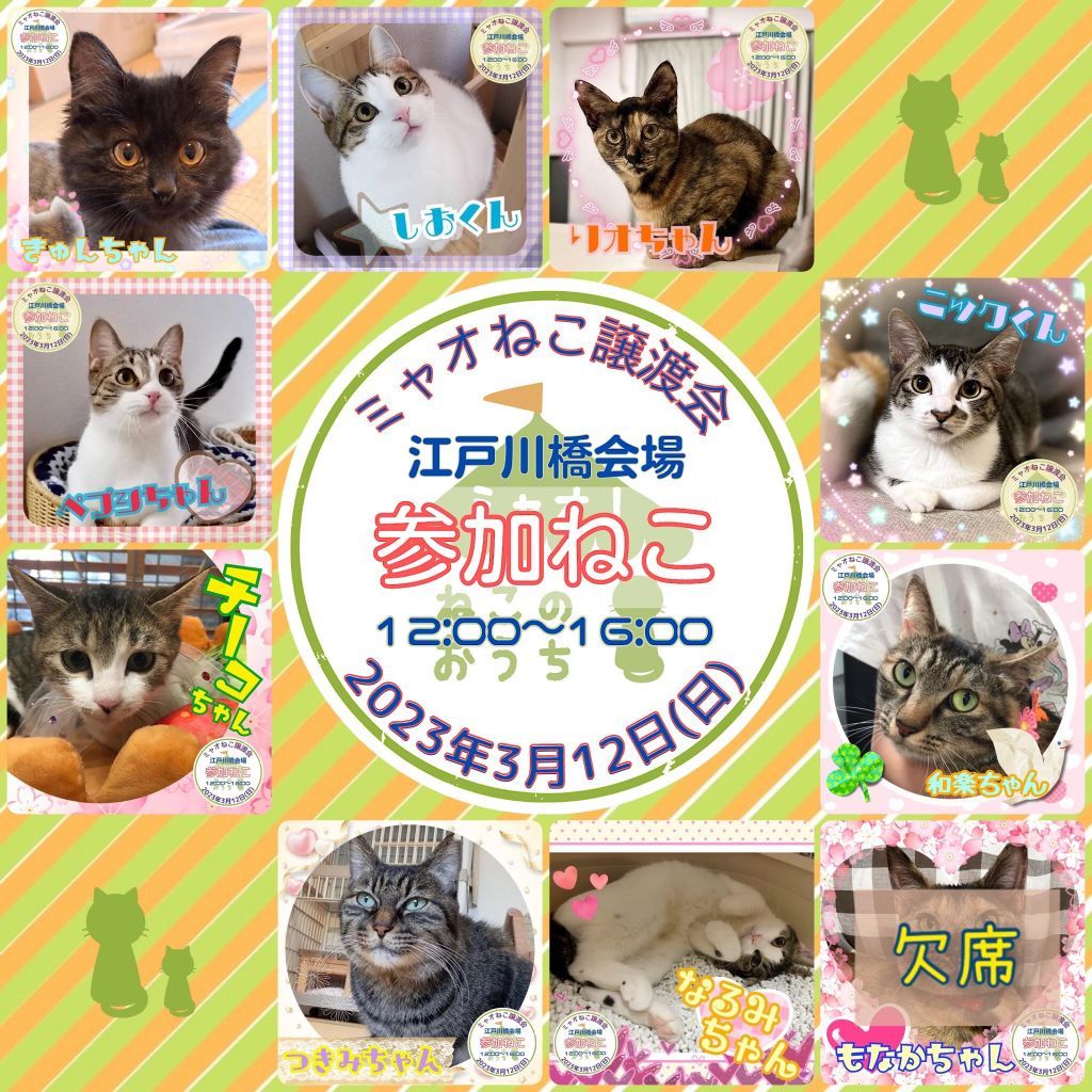 ※参加予定猫さんは、急な体調不良などで不参加になる場合もございます。予めご了承ください。