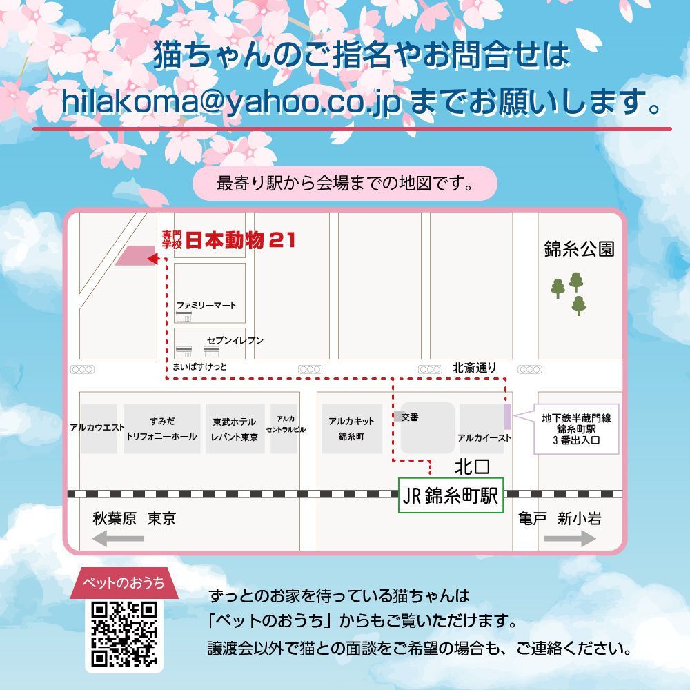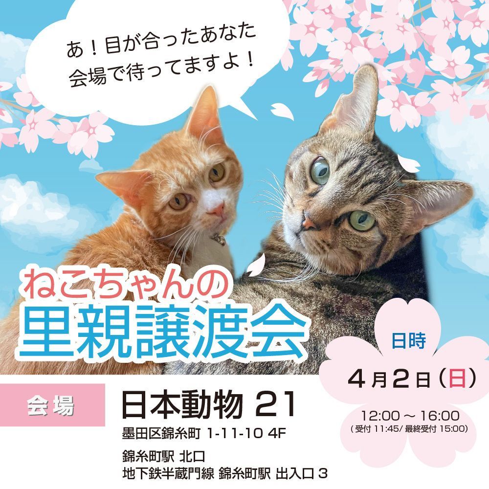 東京 錦糸町の専門学校日本動物21様のご協力により、同校舎にて猫の里親譲渡会を開催させていただきます。