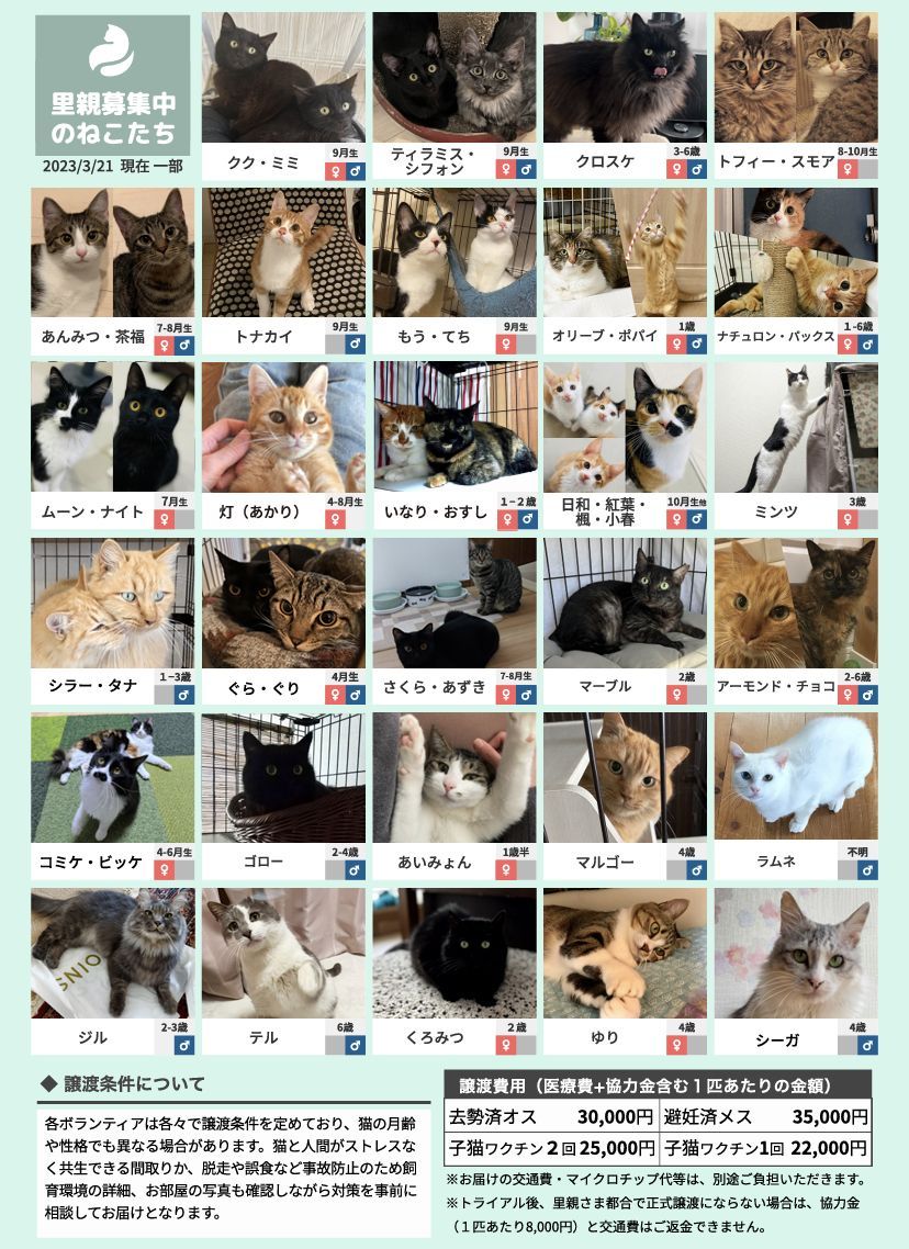 ※猫それぞれの月齢や保護主の考えにより、譲渡条件が加わる場合があります