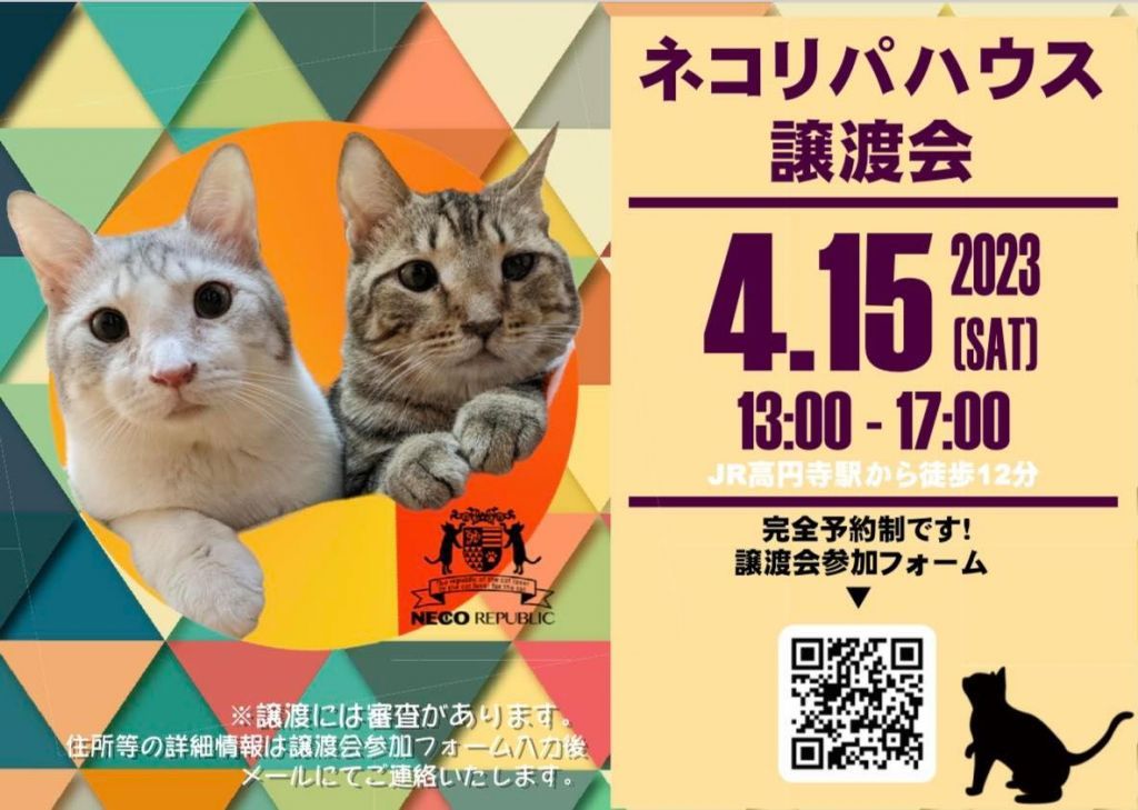ネコリパブリックの東京シェルター、ネコリパハウス高円寺で保護猫譲渡会を行います!