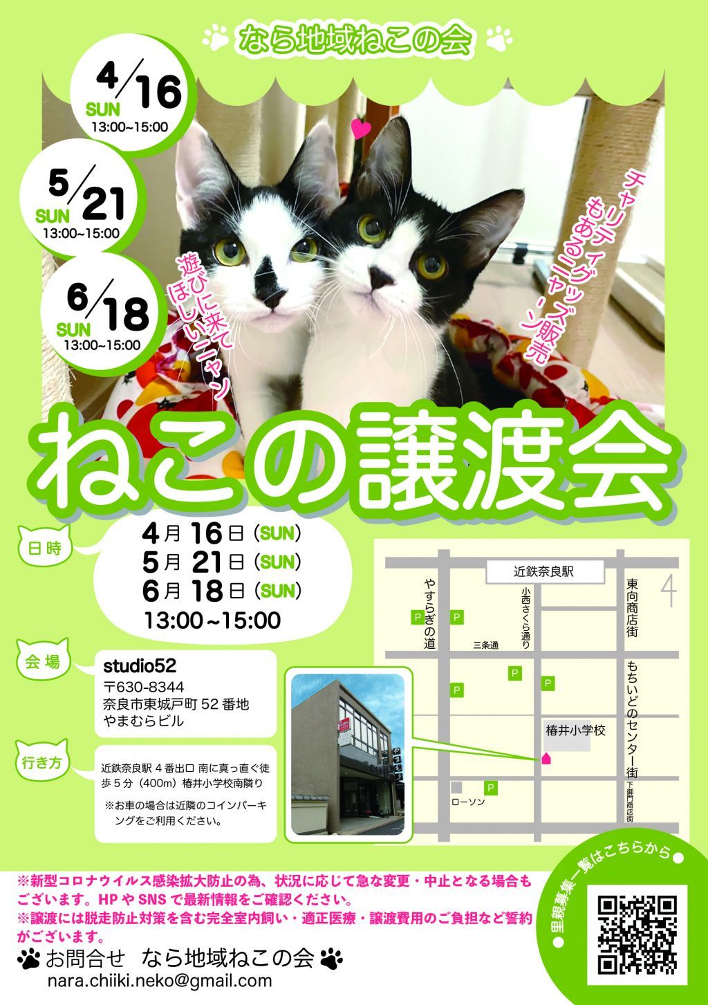 毎月奈良市ならまちにて猫の譲渡会を行っております。