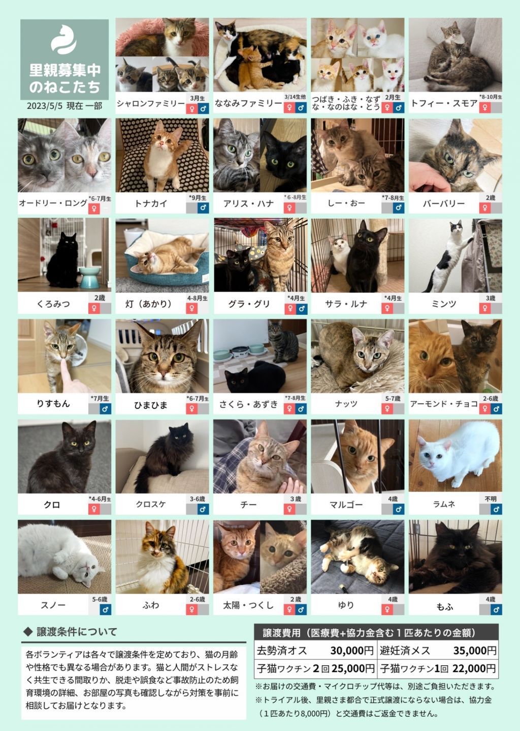 25ケージ 60匹ほどの参加となりますが、それ以外の預かり宅の猫もご紹介可能です