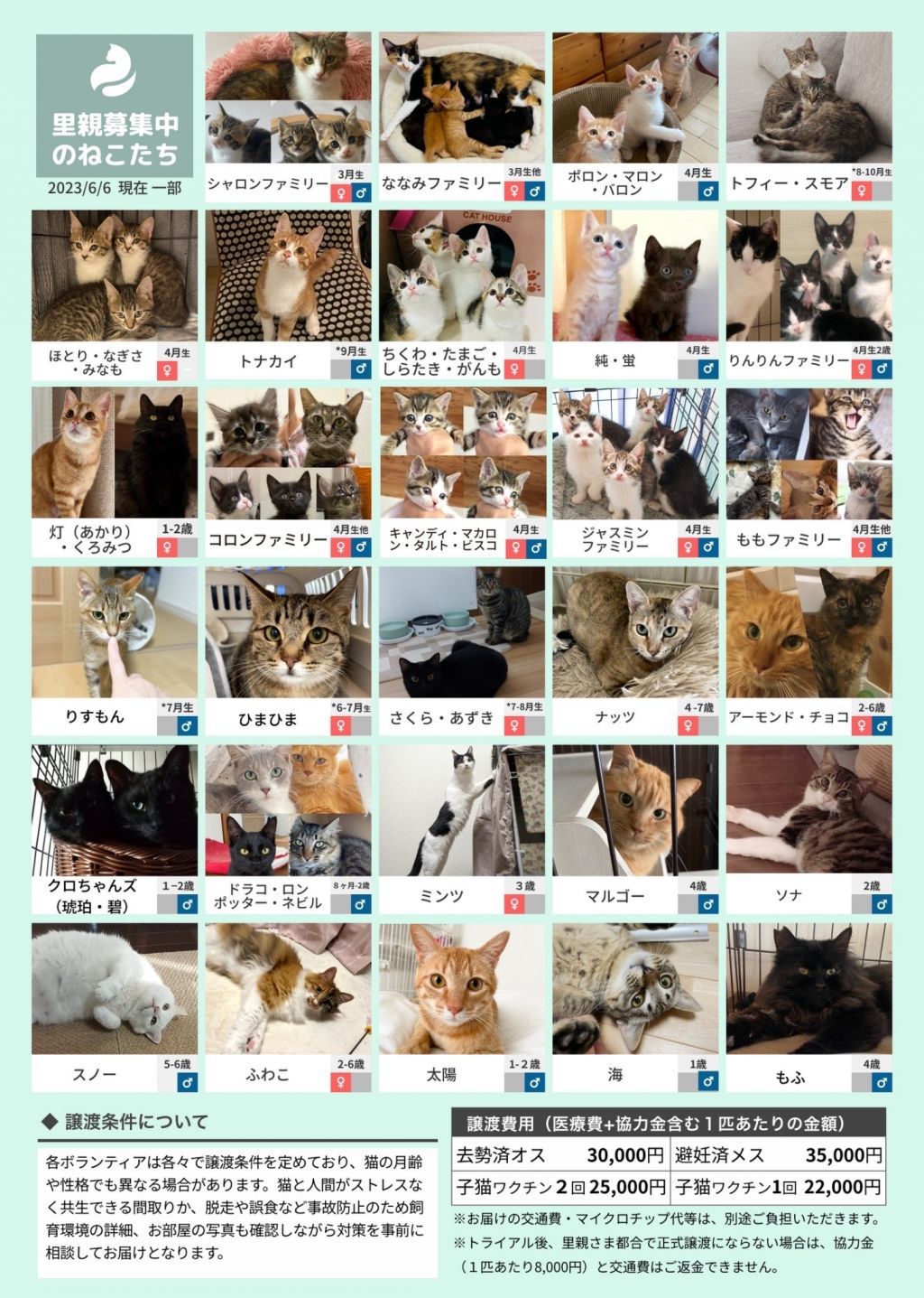 ※猫それぞれの月齢や保護主の考えにより、譲渡条件が加わる場合があります