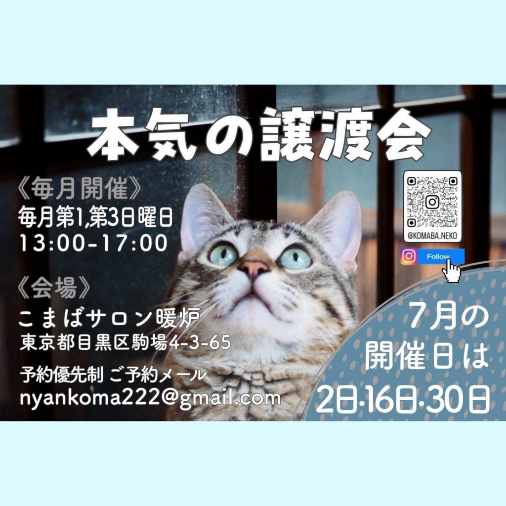 本気の譲渡会7/2(日)13:00~17:00です。