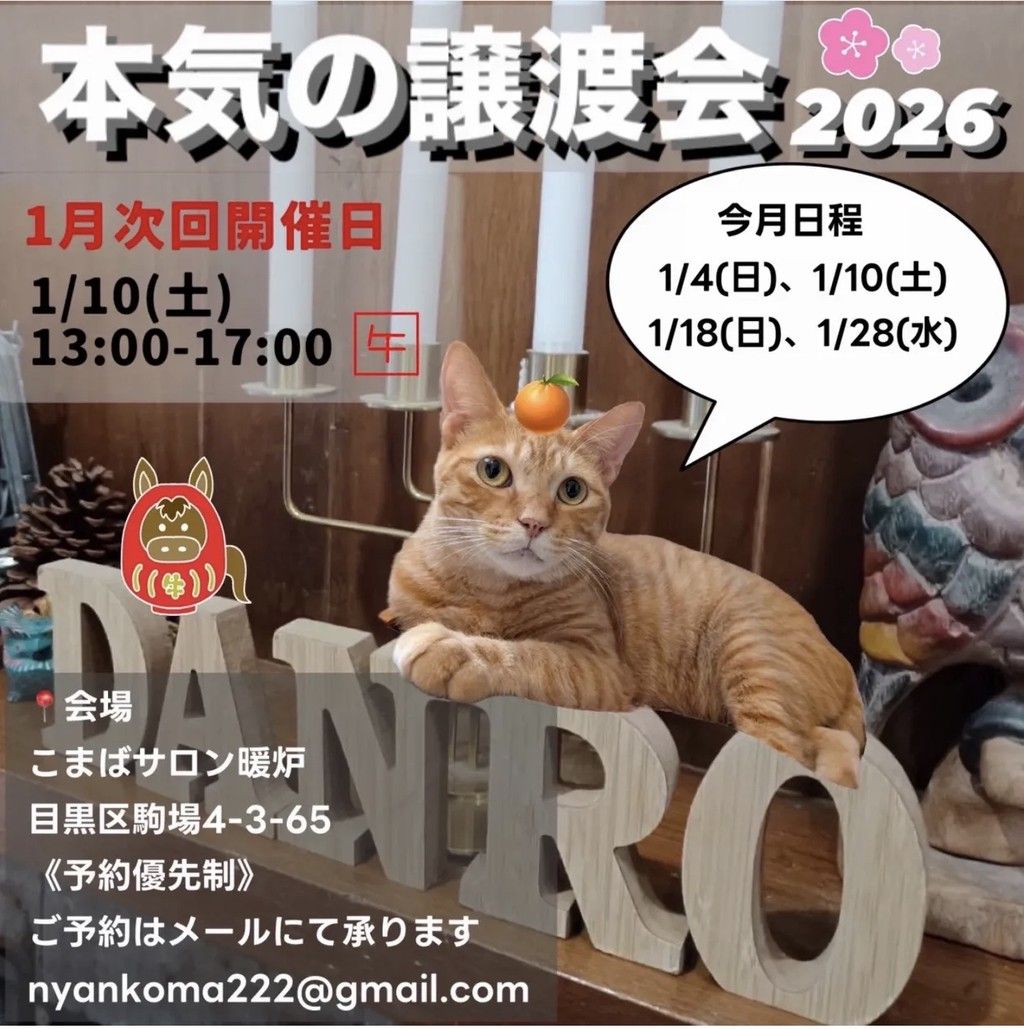 本気の譲渡会1/10(土)13:00~17:00です。