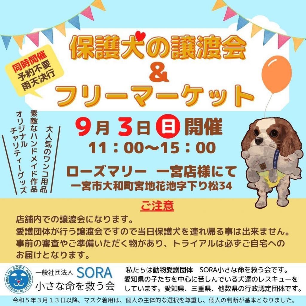 フリーマーケットと同時に保護犬の譲渡会を開催します。