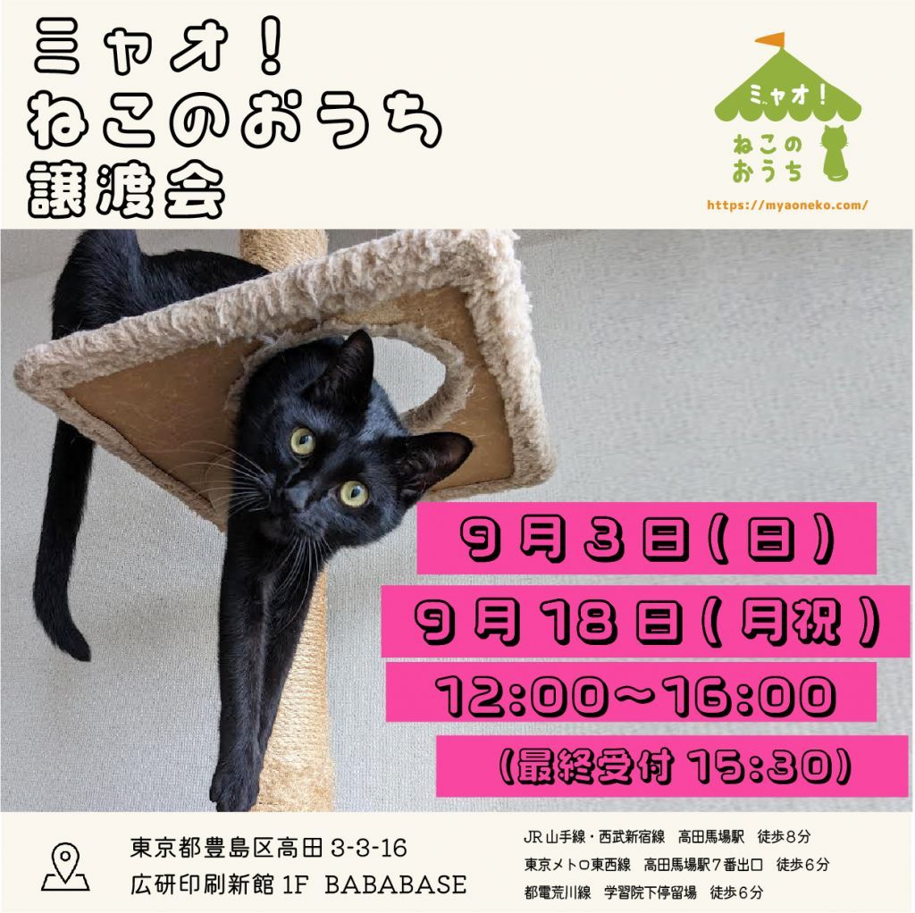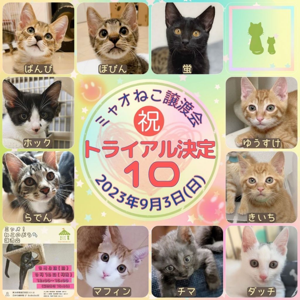 ※経済的に困難な世帯、必要な脱走対策を施していただけない方には原則的に譲渡はご遠慮頂いております。60才以上の方のみのご家庭や独身の方は、譲渡可能な猫が限られる場合があります。また、保護主により譲渡条件が異なる場合もございますので会場でご相談ください。