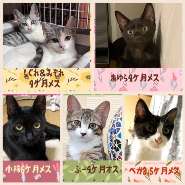 生後6ヶ月以降~成猫は不妊去勢手術済が済んでいます。