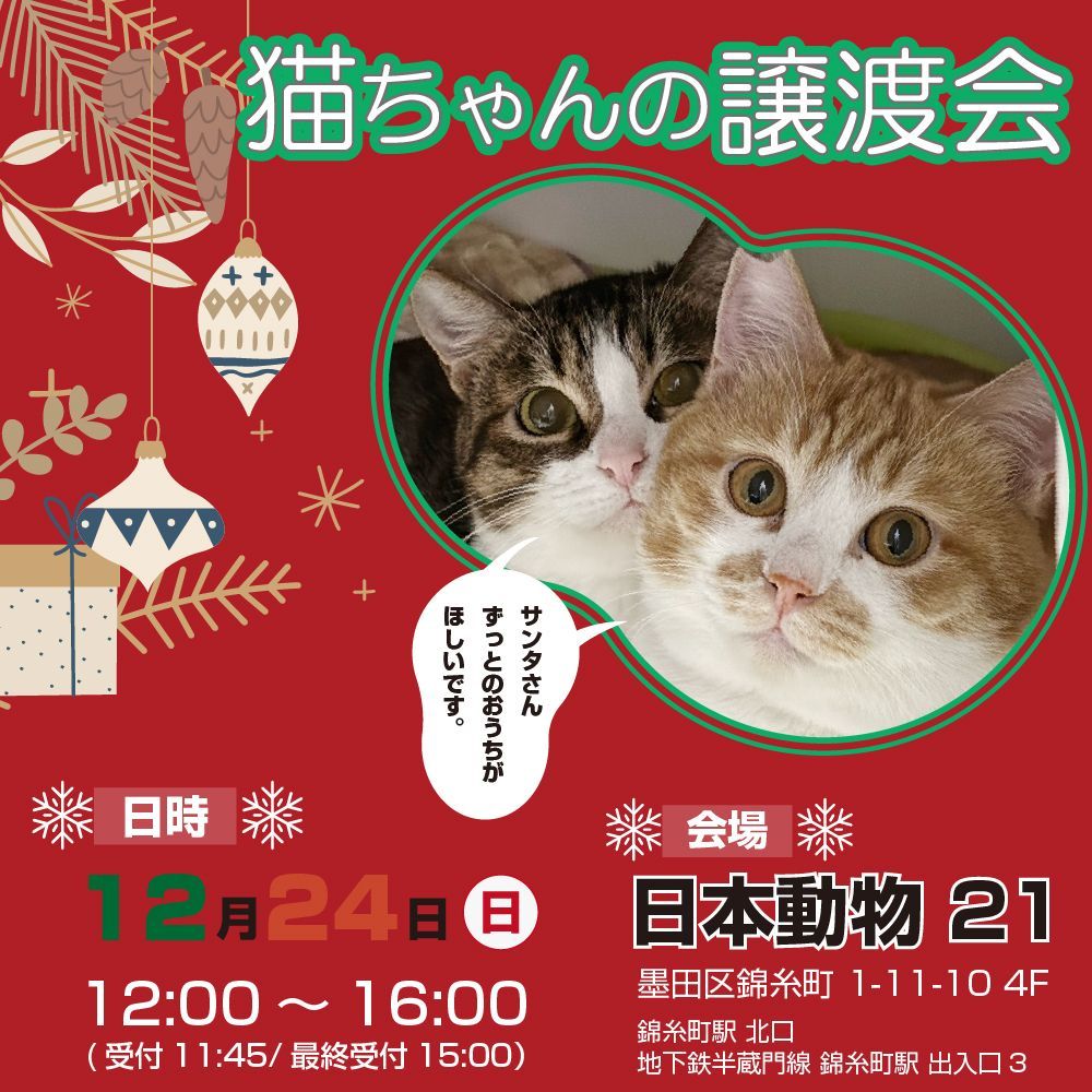 専門学校日本動物21様のご協力により、同校舎にて猫の里親譲渡会を開催させていただきます。