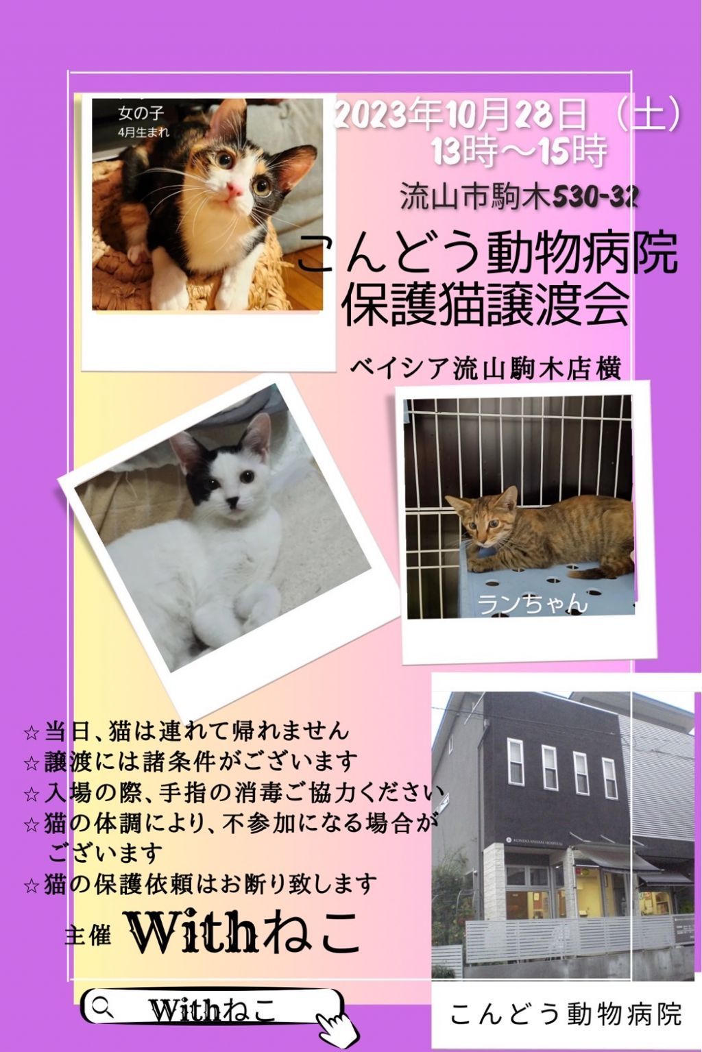 会場: こんどう動物病院 (流山市 駒木530-32)