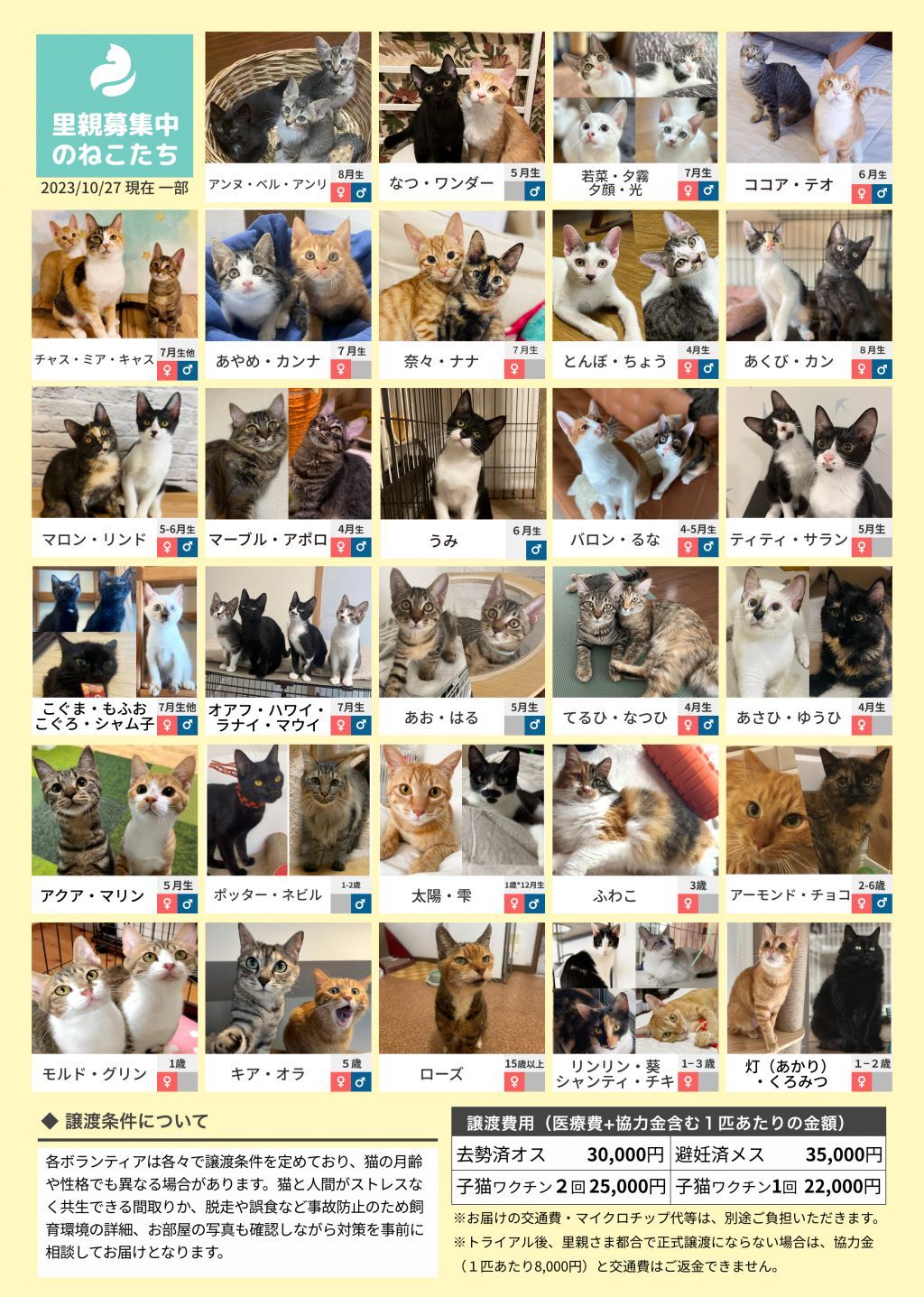 ※猫それぞれの月齢や保護主の考えにより、譲渡条件が加わる場合があります