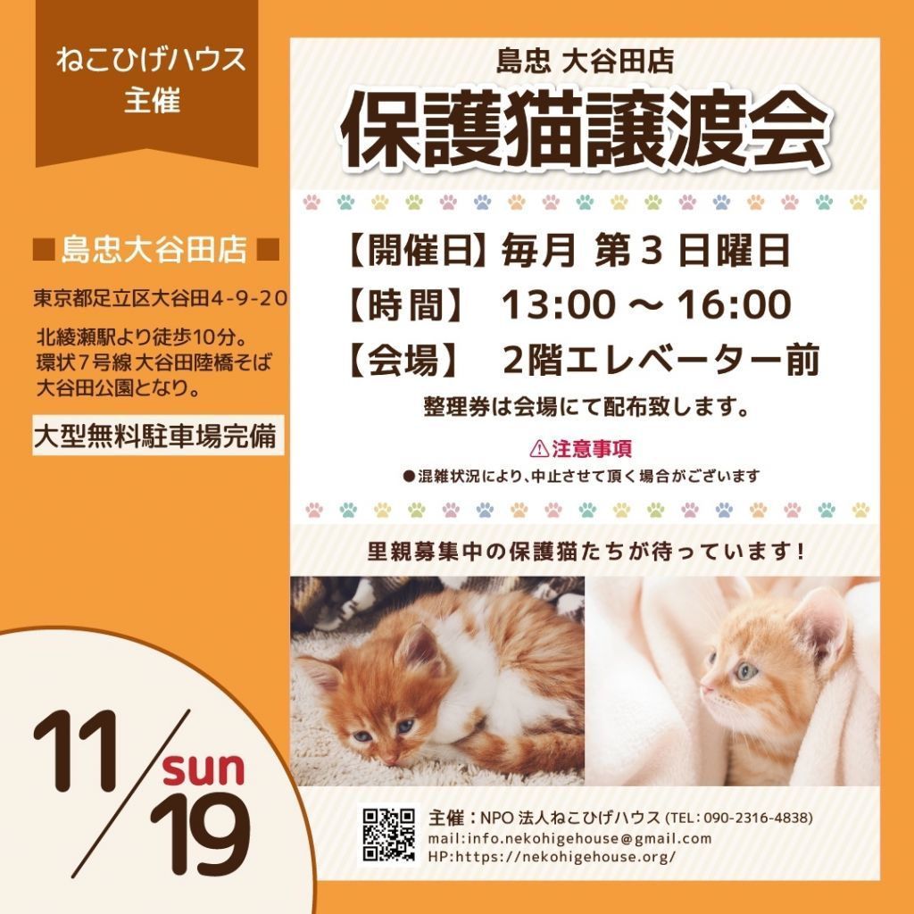 Facebook:https://www.facebook.com/nekohigehouseNPO