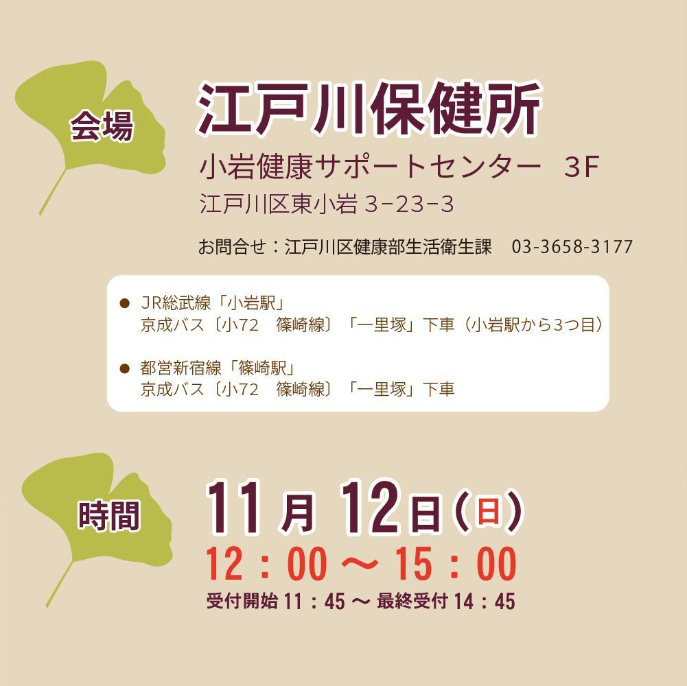 会場: 江戸川保健所 小岩健康サポートセンター 3階 (江戸川区東小岩3-23-3)