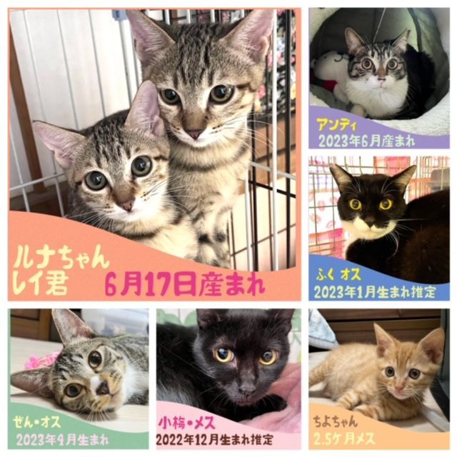 駆虫、ワクチン、ウイルススチェック、(6ケ月以上の猫は不妊去勢手術が終わってます)マイクロチップ、他