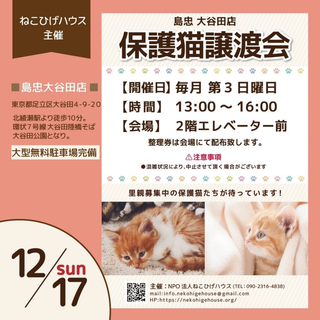 Facebook:https://www.facebook.com/nekohigehouseNPO