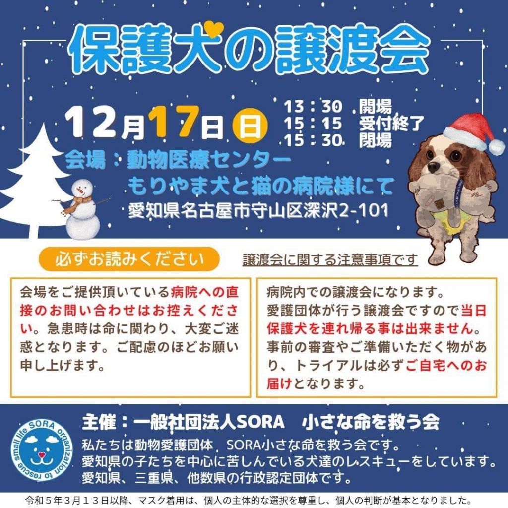 事前のお申込みは不要です。保護活動ブログで、開催日の数日前に譲渡会参加が決定したワンコたちのご案内もしておりますので、ご希望のワンコの参加をご確認してお越し頂けますと幸いです。