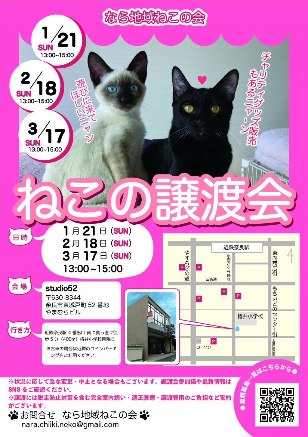毎月奈良市ならまちにて猫の譲渡会を行っております。