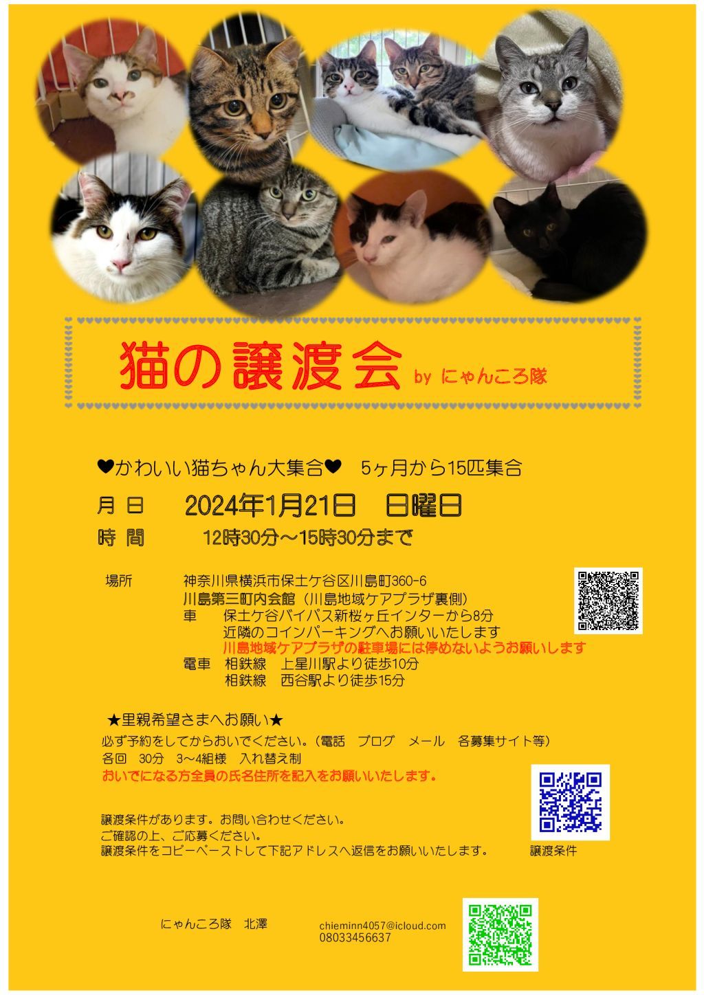 双方の条件が合った場合は譲渡会又は保護先にお見合にきていだだき成立後に自宅室内へお届けいたします。