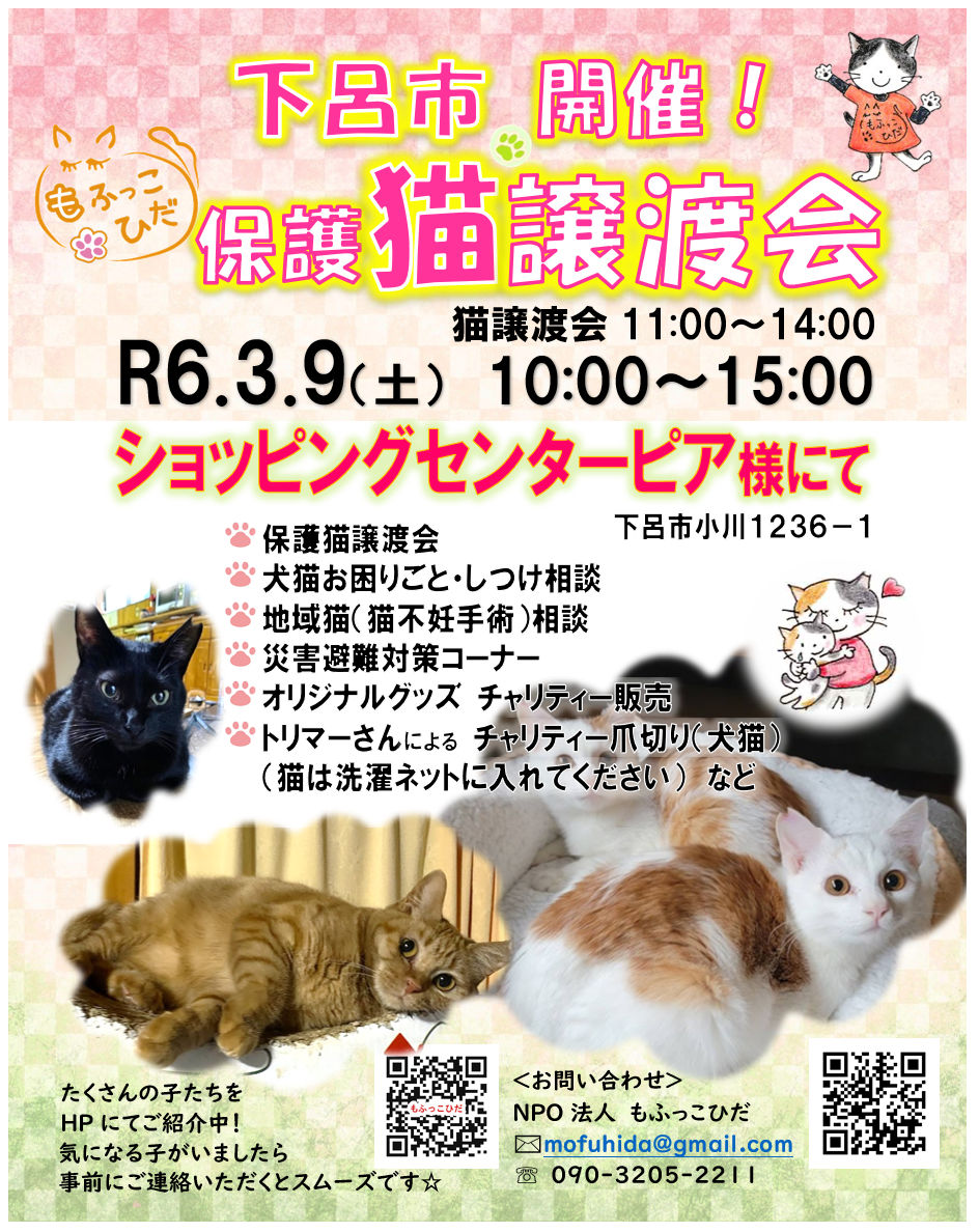 (猫は洗濯ネットに入れてきてくださいね)などなど盛りだくさん!