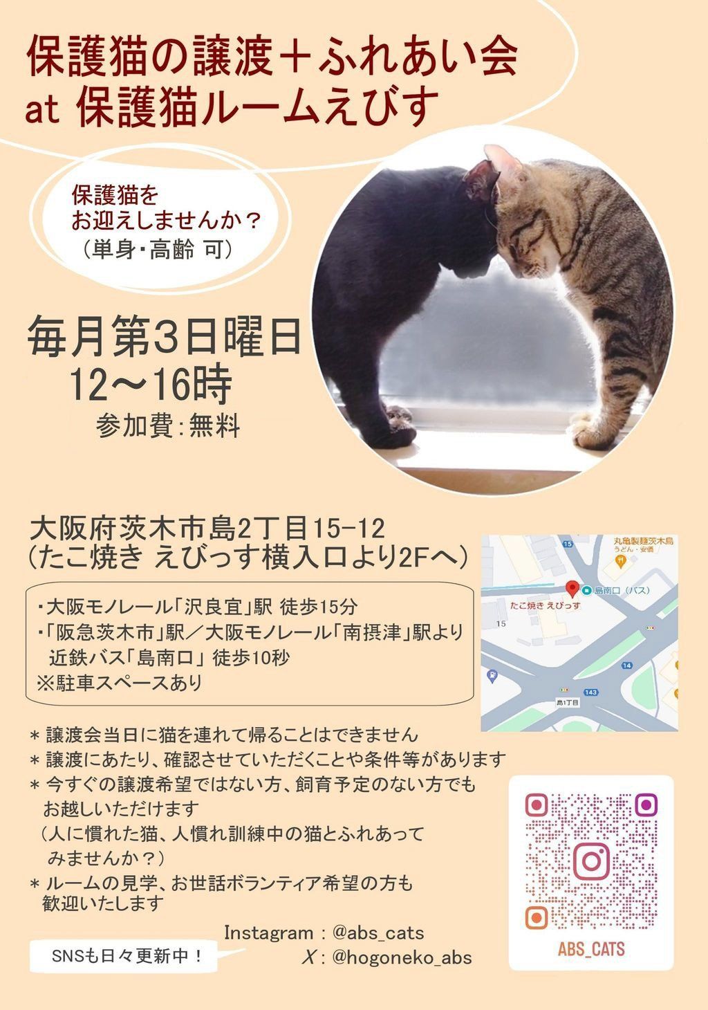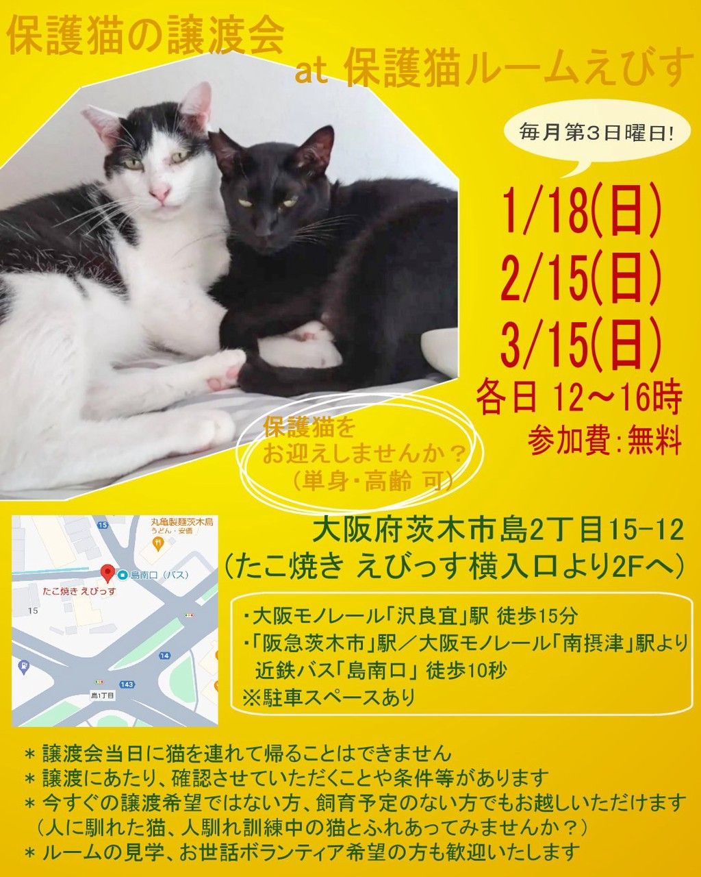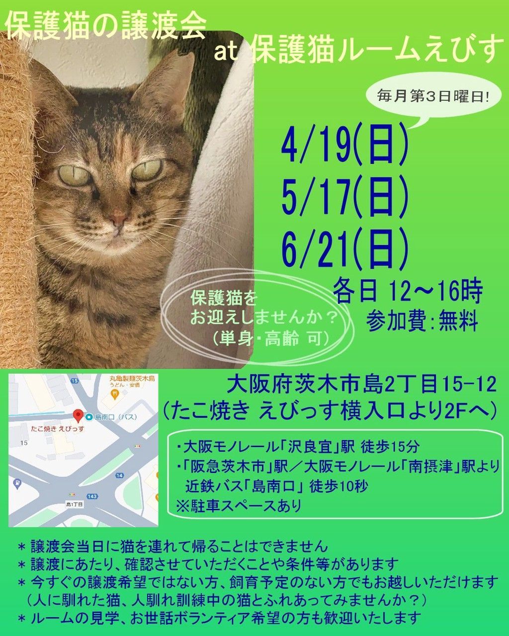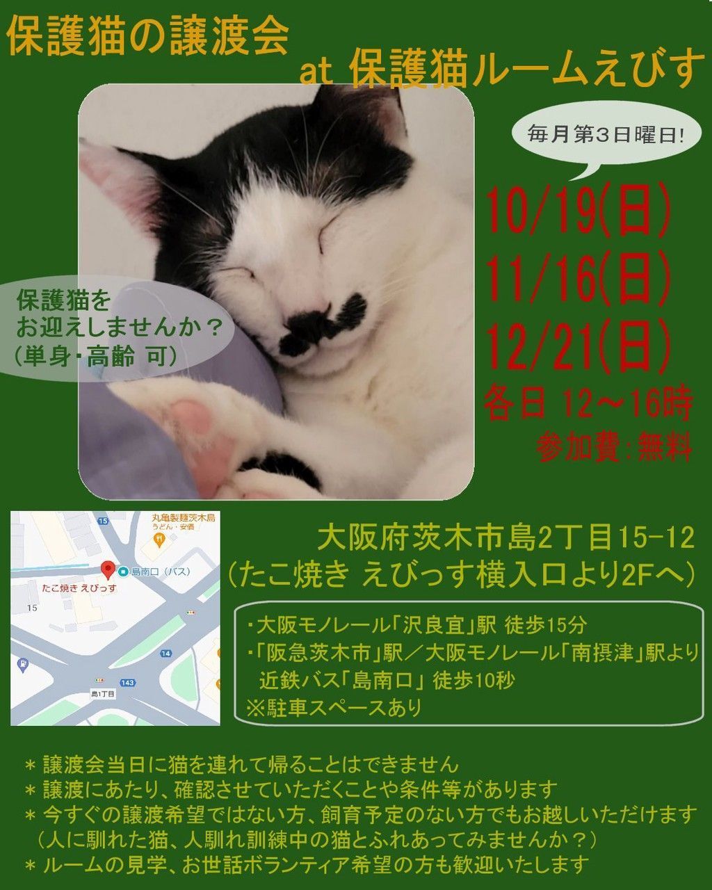 会場: 保護猫ルームえびす (大阪茨木市島2-15-12)