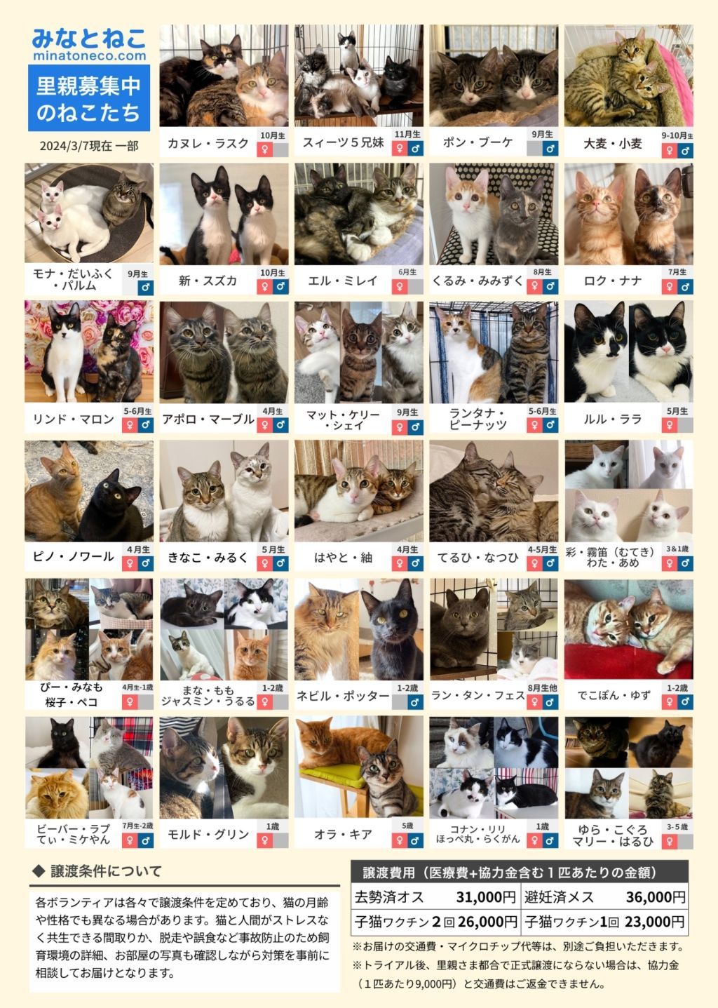 実際の参加予定猫 3/30(土)21:00までにみなとねこのHPやFacebookページでご紹介します
