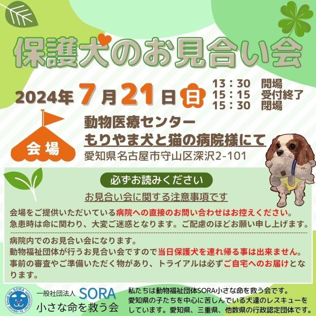 会場: もりやま犬と猫の病院さま (名古屋市守山区深沢2-101)