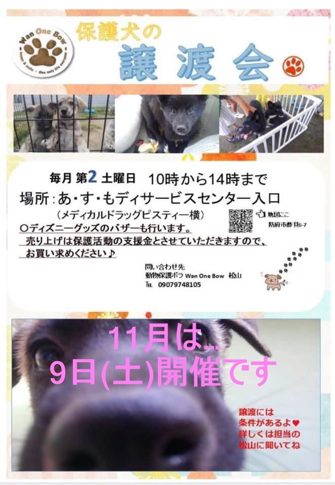 保護犬(野良犬の子犬)の里親を探す譲渡会です。現在保護している犬は1歳以上の成犬ばかりです。全頭参加は出来ませんが保護している子達の写真は会場にて確認出来ます。