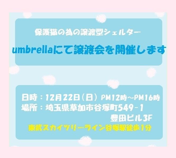新しい希望の光、命の風を届けようと開催する譲渡会です。