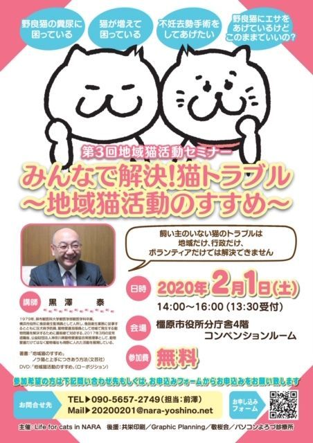 「地域猫」名付け親 黒澤泰氏を講師に招き、地域猫活動についてセミナー開催!!