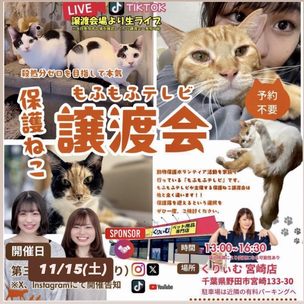 保護猫ボランティア活動を家族で行なっている「もふもふテレビ」さん主催の保護猫譲渡会:ペット用品店くりぃむさんの店舗をお借りして開催。【保護猫を迎えるという選択を】ご相談から歓迎です!