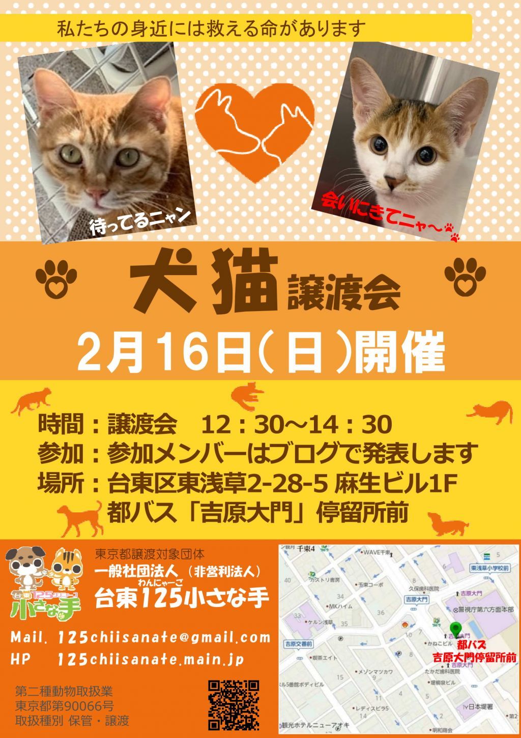 譲渡会数日前に、参加メンバーをブログで発表します。http://125chiisanate.blog.fc2.com/事前のご予約は不要です。ぜひご家族皆さまでお越しください!